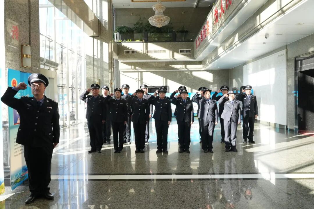 在第五个警察节来临之际,为进一步加强承德检察机关司法警察队伍建设,展示形象、凝聚警心、提振士气,提升司法警察职业荣誉感、自豪感和使命感,市检察院组织全体司法警察向警旗宣誓,重温入警誓词。